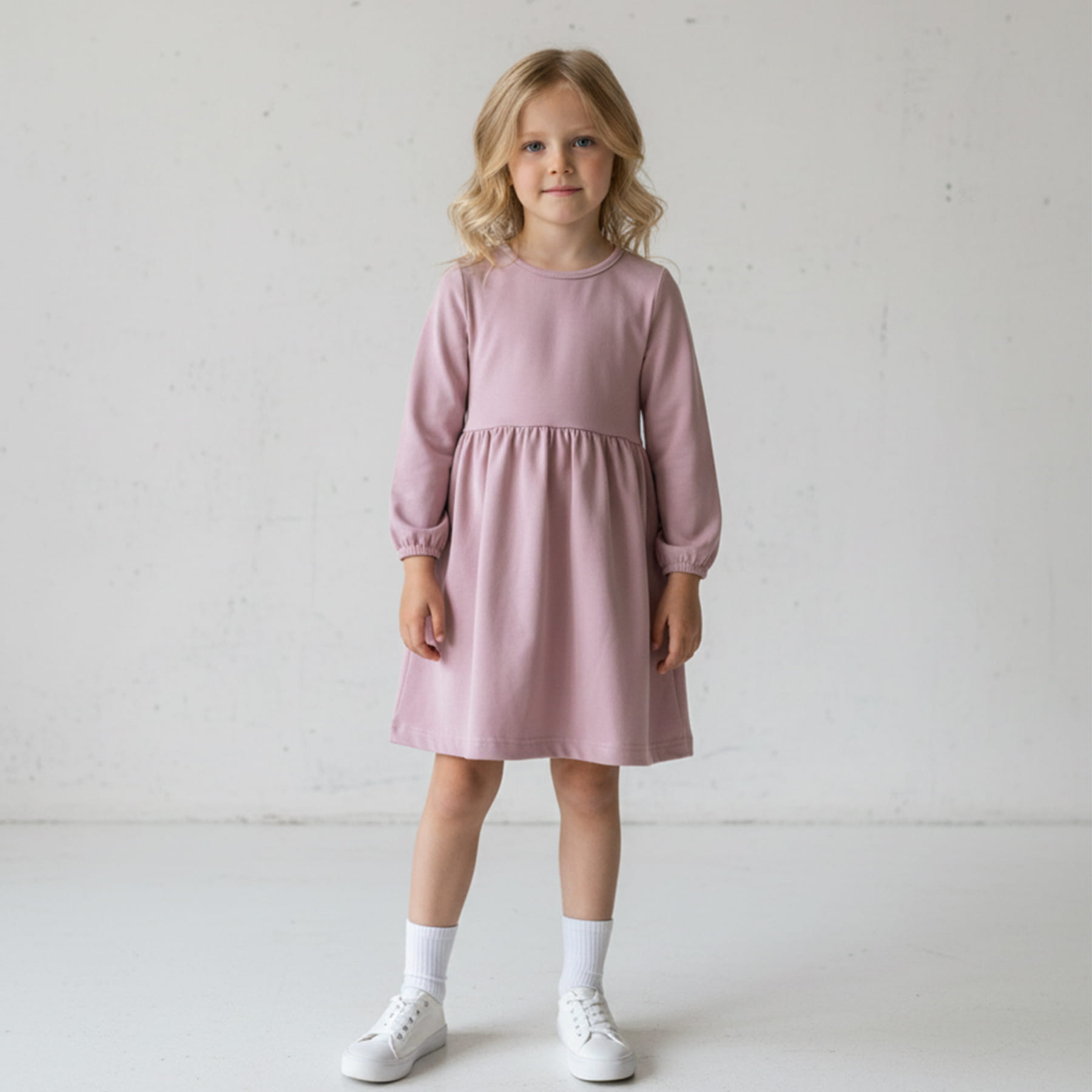 DRL-28542P Sukienka dł.ręk pudrowy róż